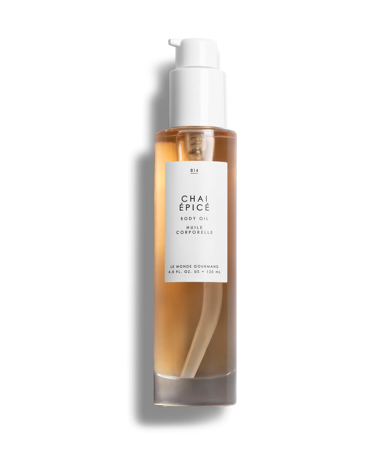Get all-over radiance with Chai Épicé Perfumed Body Oil. Every drop is an olfactive journey that transforms skin from parched to parfait. Apricot and Sweet Almond Oils nourish, while vitamin E and antioxidants help retain the look of pampered skin. The perfect balance of sweet and spicy. The love of a cozy night in and the intrigue of a sultry night out. Bold and intimate - just like you. Chai Épicé embraces you warmly with notes of Violet Fig, Muguet Musk, and Blonde Woods.